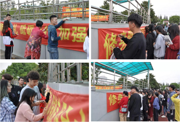 活动的最后,同学们都纷纷在宣传横幅上签上了自己的名字,每个人都表示在今后的学习、工作和生活中要努力提升思想道德水平和文明素养,做一个合格的公民,优秀的大学生!