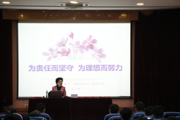 讲座中,陆老师从自己的青年时期追忆起,讲述了她从食堂的财会人员一步一步地转型成为广播电视台的首席记者的故事。这期间的经历充满了坎坷和曲折,同时更多的是对理想的坚持和追求。陆老师的讲座旁征博引,睿智独特,轻松愉悦,互动性强。随后,陆老师对同学们提出以下几点建议:一要找准自己的目标坚定理想信念;二要加强自身品德修养,同时不断增长知识与见识;三要勇于去承担责任,全面提升自己的素质。最后,她希望同学们从现在开始规划自己的人生目标,并保持坚定的信念,将自己的奋斗融入到国家和民族的前途与命运中,此外他鼓励同学们敢于有梦、勇于追梦、勤于圆梦。