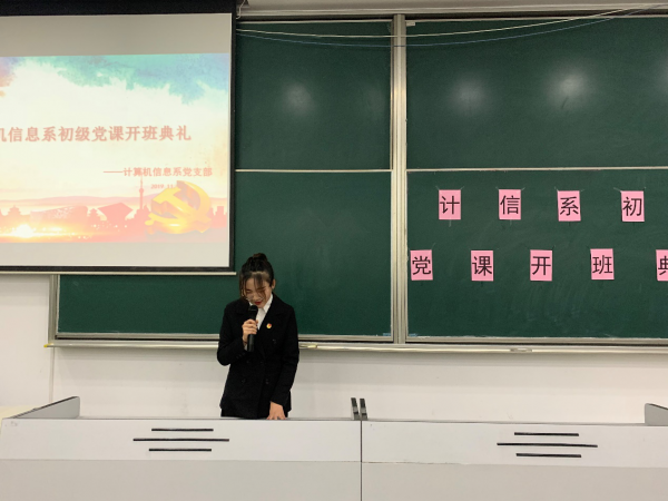 为提高申请入党积极分子的政治理论素养,做好我系学生党员的发展工作,2019年11月19日,计算机信息系在17号楼211教室对递交入党申请书同学们开展了第五期党课培训。组织部部长柴鑫龙主持,出席本次典礼的有:党支部书记王丽茹、支部组织委员吕伟、支部宣传委员干书娟以及全体递交入党申请书同学。