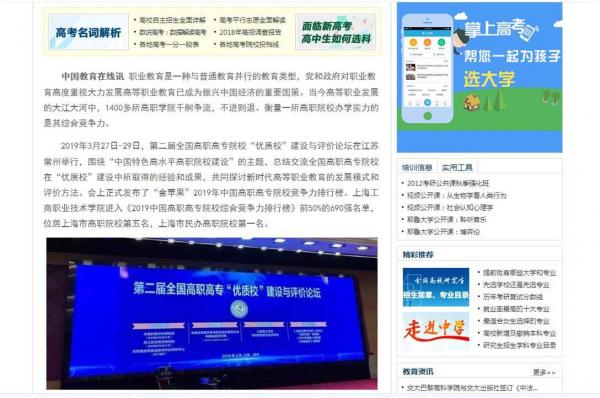 特色指标2佐证材料9:【媒体看工商】学校在2019年中国高职高专院校综合竞争力中的排行