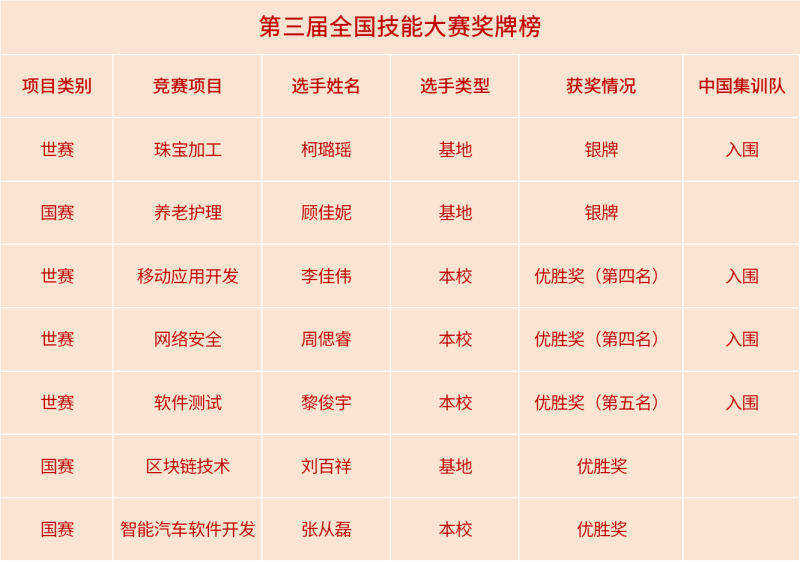 本次大赛学校承担了珠宝加工(世赛项目)、软件测试(世赛项目)、移动应用开发(世赛项目)、养老护理(国赛项目)、区块链技术(国赛项目)、智能汽车软件开发(国赛项目)、工业机器人系统运维(国赛项目)的上海市集训单位工作,共8名选手代表上海参加比赛,交出优异答卷。