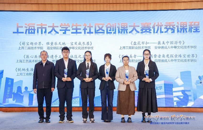 2025年10月,我校被上海市嘉定区教育局评为“嘉定区优秀社会学习点”。为深入学习贯彻落实《教育强国建设规划纲要(2024—2035年)》,根据嘉定区优化终身教育资源布局,2024年学校申报成为嘉定区终身教育“社会学习点”,学校在配套课程建设与社会服务工作上再获认可。自2024年开课以来,1门课入选上海市精品课程资源库,4门课入围“大学生社区创课优秀课程”,14门课获得“大学生社区创课潜力创课奖”。
