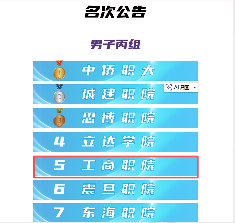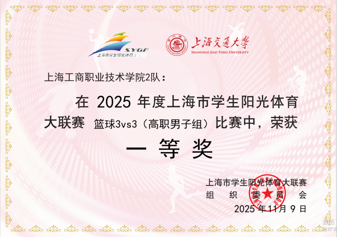 同步举行的2025年上海市学生阳光体育大联赛三对三篮球赛(高职男子组)中,我校派出两支队伍参赛,与全市高职院校精英同场竞技。队员们发扬敢打敢拼、永不放弃的精神,经过多轮激烈角逐,最终二队荣获一等奖,一队夺得二等奖,双双站上领奖台,展现了我校在篮球项目上的整体实力与人才厚度。