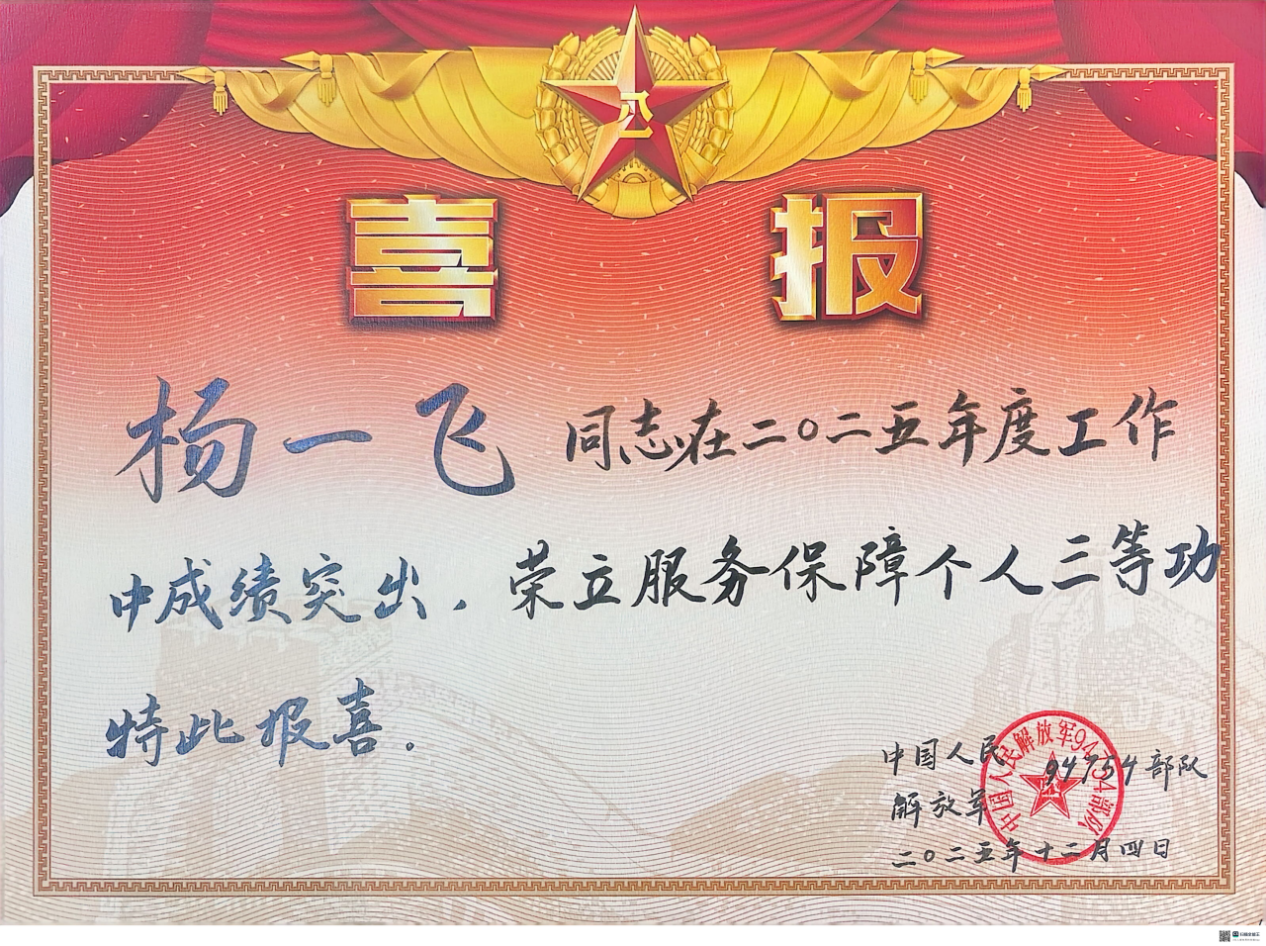 杨一飞同学荣立三等功,充分展现了我校学子志存高远、报效祖国的精神风貌,也生动体现了学校立德树人的育人成果。学校将持续深化国防育人工作,积极跟踪服务好现役和退役大学生士兵,传承红色基因,为国防事业培养更多高素质人才。希望更多的青年学子将个人理想融入国家发展和国防建设的时代洪流之中,把爱国情、强国志、报国行统一起来,到基层一线去,到祖国最需要的地方去,在服务国家、服务人民的生动实践中锤炼本领、增长才干。