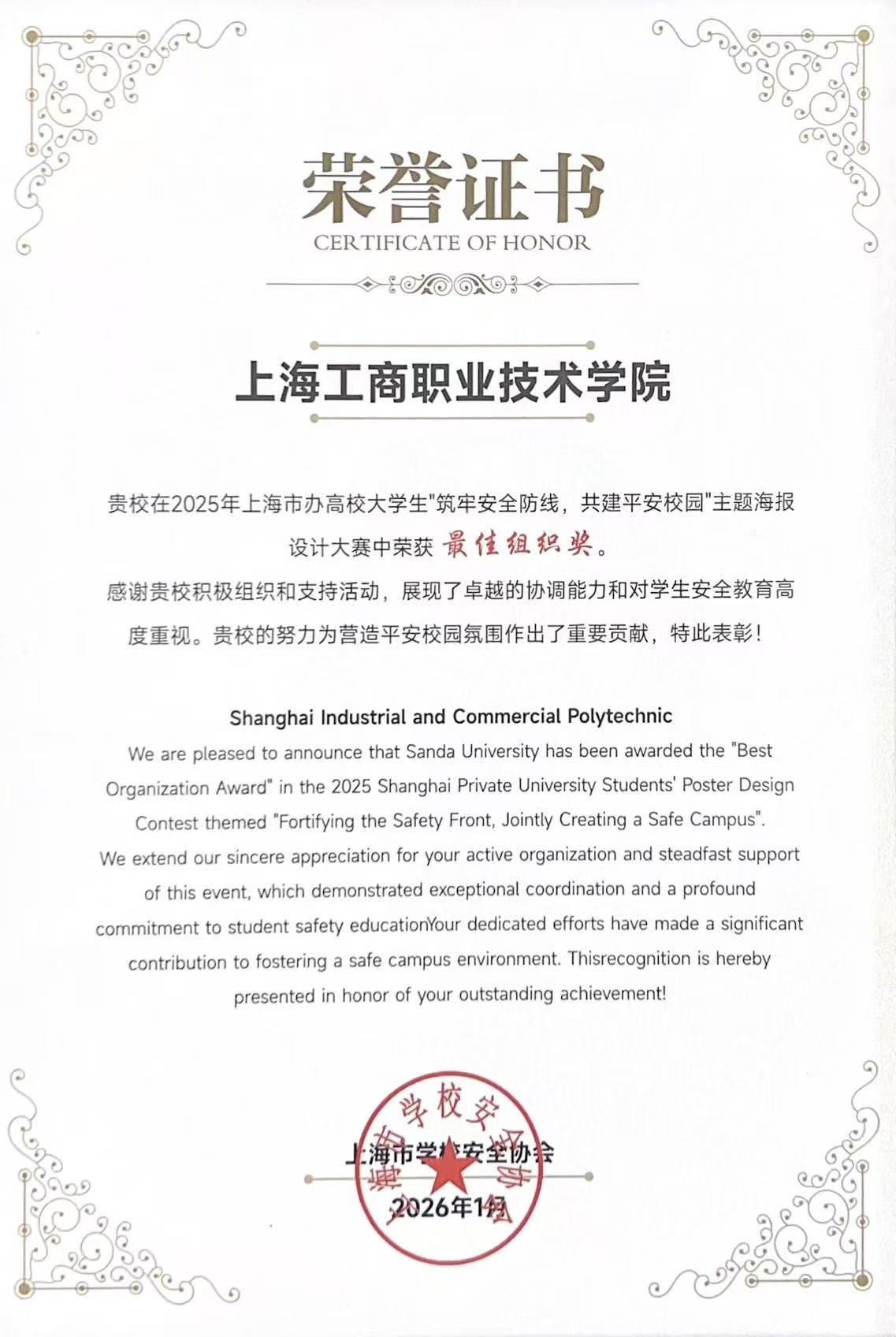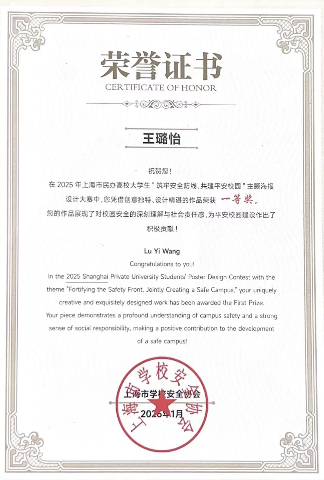 近日,2025年度上海市民办高校大学生“筑牢安全意识,共建平安校园”主题海报设计大赛获奖名单正式揭晓,我校一举斩获多项重要荣誉,为校园安全文化建设再添亮丽一笔。